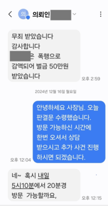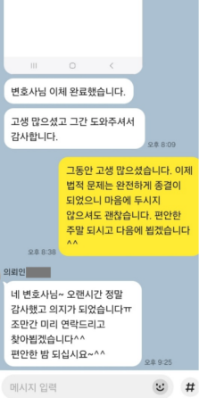 의뢰인분께서 직접 보내주신 진심 어린 후기입니다.