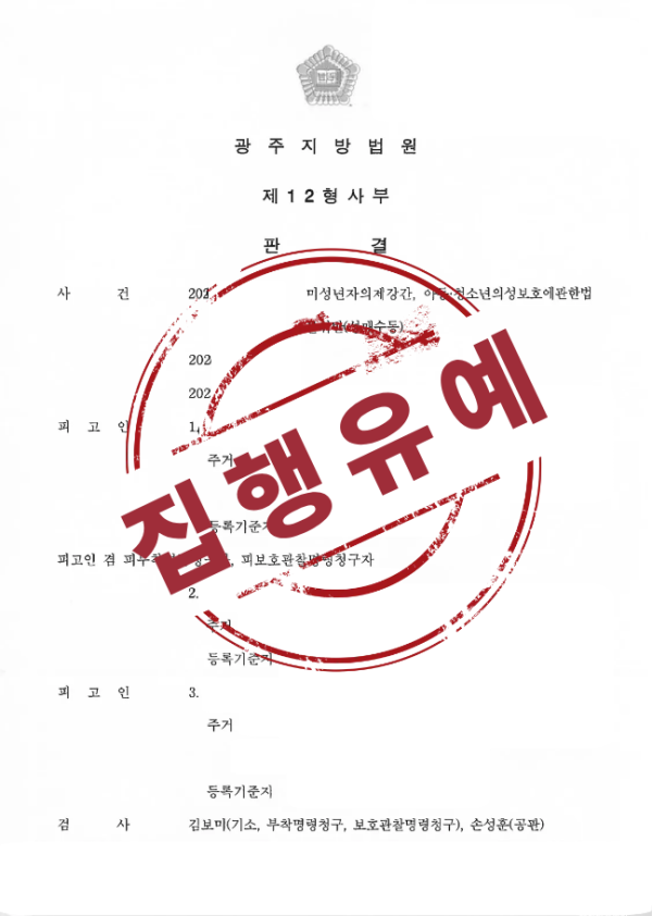 그 결과, 재판부는 피해자와의 합의나 형사공탁이 이루어지지 않은 사건임에도 불구하고, 의뢰인의 여러 사정을 종합적으로 고려하여 실형 대신 집행유예를 선고했습니다. 또한 본 사건에서는 공개명령과 고지명령까지 면제되는 결정을 받았습니다. 이는 미성년자의제강간 및 성매수 사건에서도 개별 사정이 충분히 소명될 경우, 피해회복이 완전히 이루어지지 않은 상태라도 재판부가 이를 참작해 집행유예 선처를 인정할 수 있음을 보여주는 사례입니다.